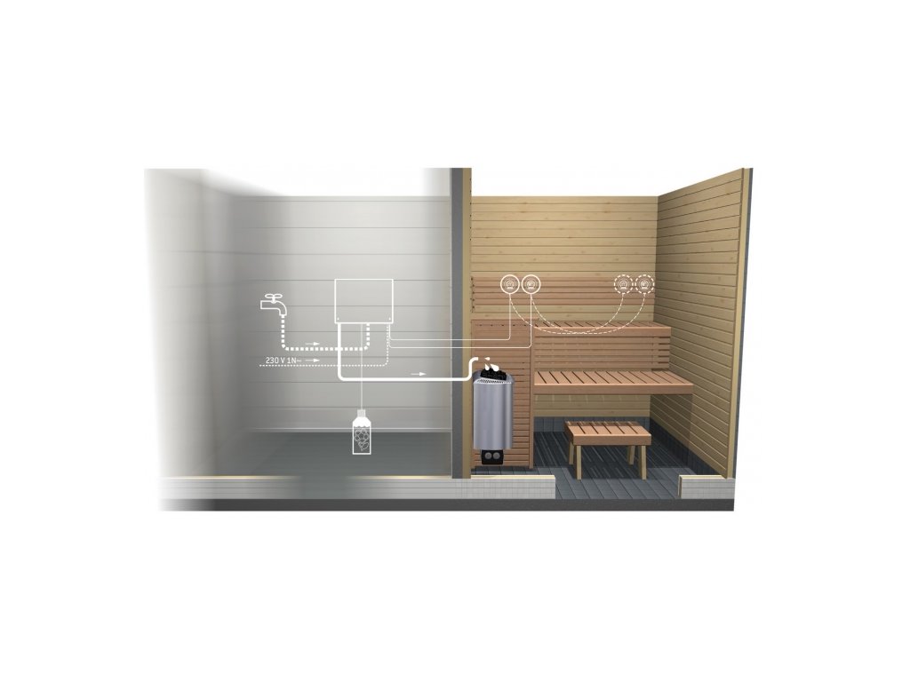 Účelem dávkovače je aplikovat vodu a směs vody s esencí na vyhřívané kameny a saunová kamna. Zařízení se skládá z hlavní jednotky a ovládacích tlačítek - 1 tlačítko pro vodu a 1 tlačítko pro směs vody s esencí. Můžete instalovat dalších několik tlačítek (lze zakoupit samostatně).
