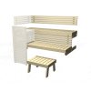 Lavicový set Formula - osika, délka 2200 mm, hloubka 500 mm. Zahrnuje horní a dolní lavici, podkolenní opěrka, opěrku zad, podnožku a bezpečnostní zábradlí.