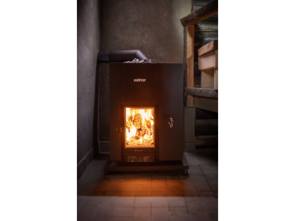 Větší skleněná dvířka, která pouští do sauny hravé odlesky hořícího dřeva, jsou nezbytnou součástí. Navíc uklidňující poslech klidně praskajícího dřeva je pro celkovou relaxaci těla i duše k nezaplacení. Jednoduchý a čistý design nebude v žádné sauně překážet, stejně jako elegantní černá barva opláštění.
