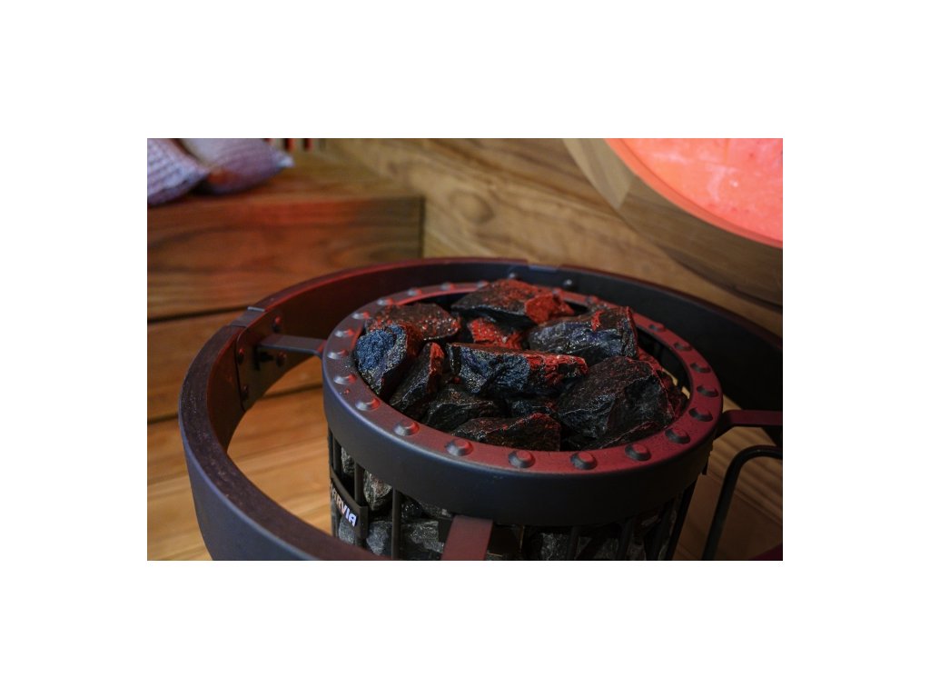 Vulkanit je vyvřelá tvrdá a velmi odolná hornina sopečného původu, který sahá do cca 2 000 milionu let. Na základě své struktury a složení je dobrou volbou do saunových topidel. Po polití vodou se kameny budou krásně lesknout a dodají saunování opravdový zážitek. V černých topidlech Harvia budou navíc vypadat velmi elegantně.